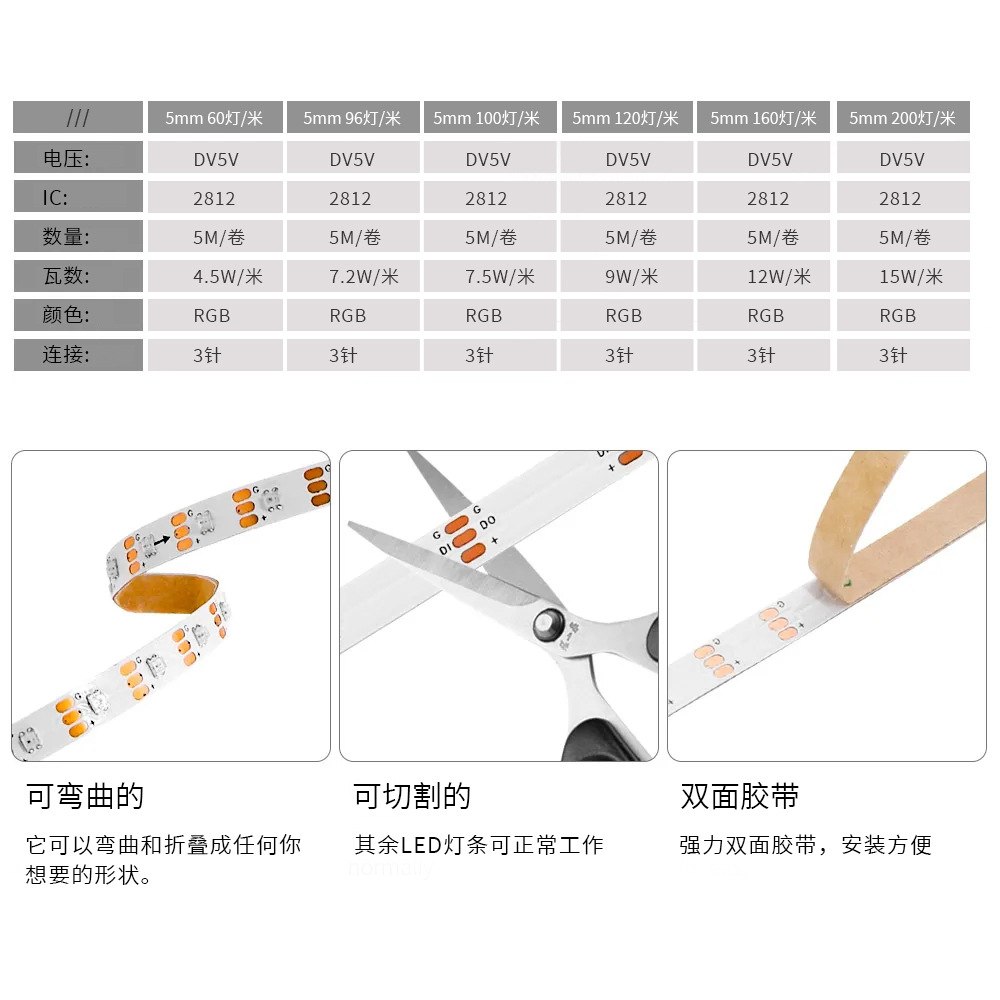 灯珠数量:60,100,152灯/米